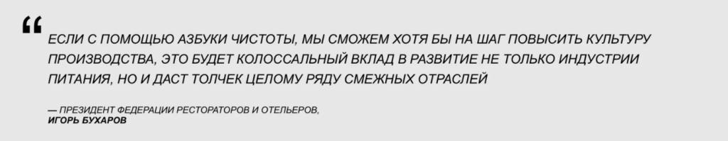 Проект создан в 2008 года. В рамках проекта начала издаваться Серия наглядных пособий – уникальное решение для обучения в области гигиены и безопасности производства.Практические решения проекта формируют базовую привычку - ПРИВЫЧКУ ЧИСТОТЫ, без которой не может существовать даже самое модернизированное предприятие. Проект растет, постоянно анализируются новые проблемы в индустрии питания, производстве и продаже продуктов. Ассортимент пособий постоянно расширяется, а информационное наполнение постоянно актуализируется в соответствии с Российским и международным законодательством.
